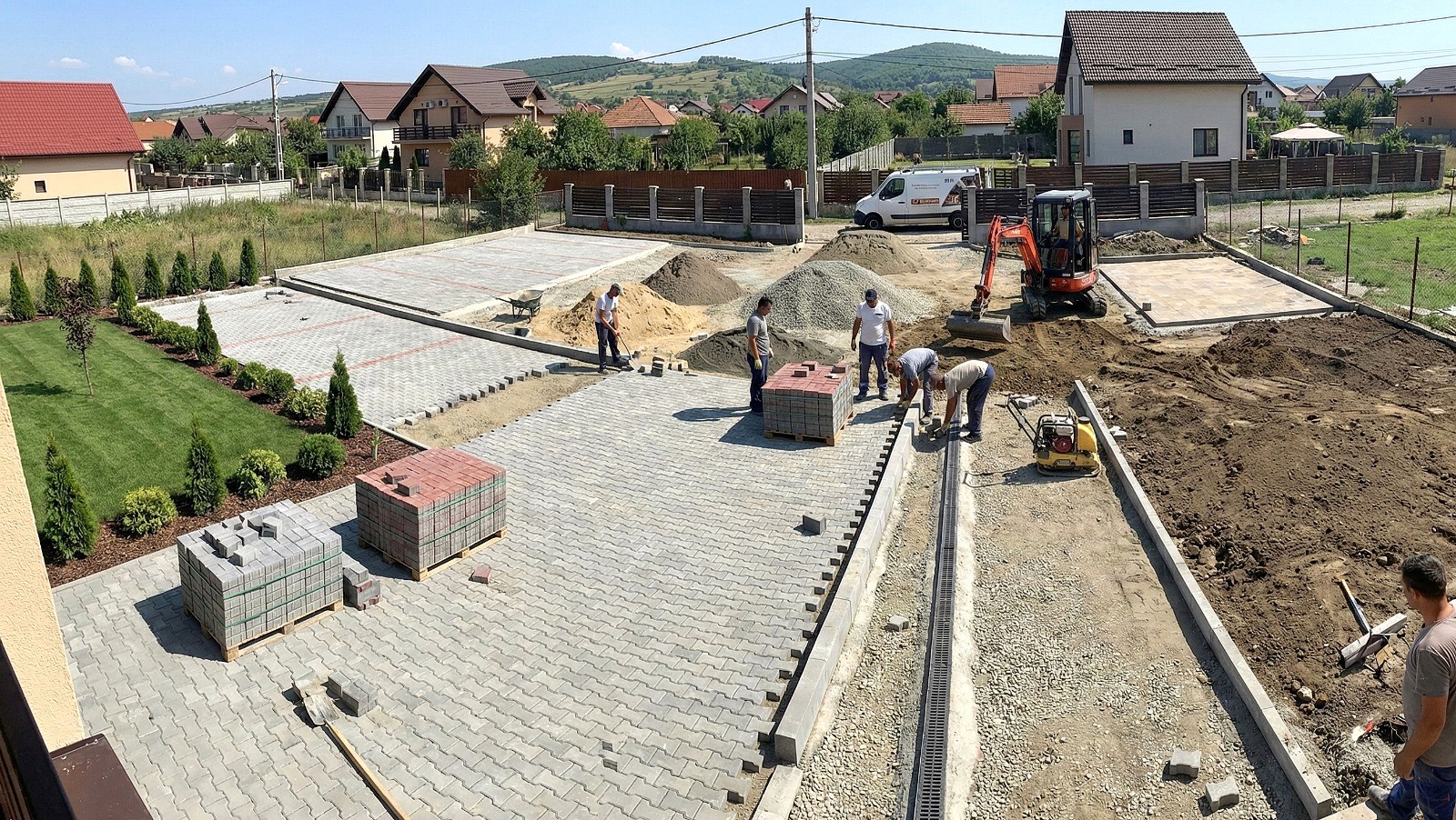 Curti, alei, pavele, borduri, rigole, platforme auto, parcari, pregatire teren + executie completa.