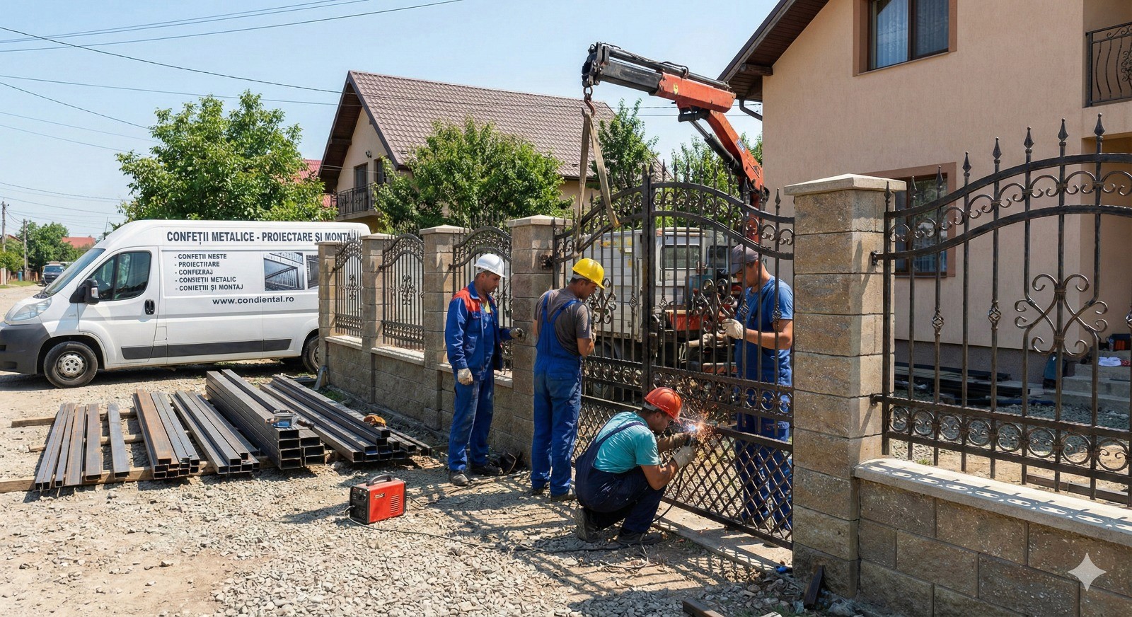 Executam confectii metalice la comanda: garduri, porti, balustrade, scari, copertine si structuri metalice, cu finisaje curate si montaj corect.